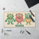 This adorable personalised desk mat features three cute, happy monsters having fun together.