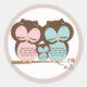 Sweet Little Owl Family on a Branch Classic Round Sticker
