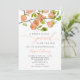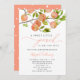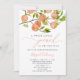 Rustic peach theme gender neutral baby shower invitation card featuring illustration of the garden fruit on a tree branch. Perfect for a girl's shower in the summer.