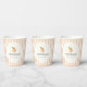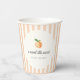 Cute "sweet little peach" theme baby shower paper cups, featuring a pastel peach striped background and a vintage script.