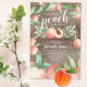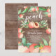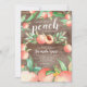 Sweet little peach is on the way baby shower invitation featuring a peach & green leaf frame set on a rustic wood background. Visit our shop to view our sweet little peach design collection.