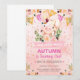 Pink pig and flowers girl birthday invitation.