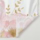 This design features a sparkly royal crown in faux gold glitter decorated with soft watercolor blush peonies and sprinkles of confetti.