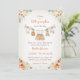 Prepare to celebrate the upcoming arrival of your little pumpkin with our Sweet Little Pumpkin Autumn Baby Shower Invitation. This delightful invitation features beautiful orange, cream, and beige watercolor baby clothes hanging on a clothesline, along with charming florals and pumpkins. It captures the essence of fall while expressing the joy of welcoming a new baby. This invitation is the perfect way to set the tone for your autumn-themed baby shower and is available in multiple colours to suit your preferences. Customisation is easy!