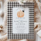 Celebrate the arrival of your little pumpkin with our charming baby shower invitation, designed in a delightful black gingham pattern. This gender-neutral invitation features an adorable pumpkin & black catt motif, making it perfect for welcoming any new addition to the family. Invite your loved ones to share in the joy of this special occasion with a touch of seasonal charm.