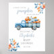 This pretty baby shower welcome sign features rustic autumn fall leaves, a cute blue truck full of pumpkins and can be personalised with your name and special date. Designed by Thisisnotme©