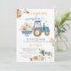Elegant Blue Tractor Autumn Leaves Baby Shower Party Invite