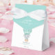 Add a whimsical touch to your gender neutral baby shower with these adorable "sweet little thank you" favour boxes, featuring a sweet watercolor elephant in a soft mint green hot air balloon. Easily personalise with the name of the mum-to-be and the baby shower date.