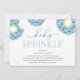 Invite friends and family to your baby sprinkle with our adorable doughnut invitations. Designed for baby boys on the way, these cute baby sprinkle invitations feature a three doughnut illustrations across the top, adorned with light blue icing and sprinkles. Add your event details in modern blue and dark grey lettering.