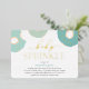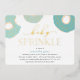 Cute gender neutral baby sprinkle invitations feature a trio of doughnuts in shades of aqua, topped with gold foil sprinkles. "Baby Sprinkle" appear in gold foil lettering, with your event details beneath.