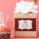 Rustic, hunting theme look design: a washed old barn shape with dotted red buffalo frame, deers, all on a red black buffalo plaid as background. Use Customise tool to add your info. For matching items, please, visit my Lumberjack Party Collection.
