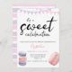 Plan your little one's special day with this charming macaron theme birthday invitation in pastel pink and purple colours.