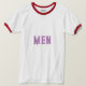 Men Text or Name or Word with Lavender Colour Text and The Style is Basic Ringer T-Shirt, Colour type is White/Red and Size type is Adult 2X. You can able to edit the text name of MEN.