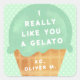 This modern and sweet Valentine's Day classroom sticker features a mint green polka dot background with a cute illustration of a mint green gelato cone. The greeting on the front says "I really like you a gelato". This small size is perfect for classroom Valentine exchanges!