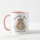 Sweet illustration of a baby bear hugging its mama with the words "Momma Bear." Pink hearts and green leaves surround the image.