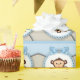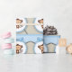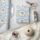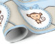 Adorable brown and baby blue monkey baby shower wrapping paper.