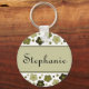 Cute keychain featuring cute simple little flowers in shades of olive green in various sizes and a banner with custom name, on white background. Click the "Customize" button to add your own name, monogram or initials, change the font style, font color and font size. Great gift idea for birthdays, anniversaries, holidays and special days.