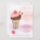 Ice cream invitation for a Sweet One! A cute and pretty design for your little girl's cool summer birthday party. The design has an ice cream sundae with scoops of strawberry and chocolate ice cream, wafer rolls, chocolate sauce and fresh strawberry halves. It has a watercolor wash background in a tropical sunset sorbet of pink and peach with whimsical typography.