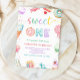 Cute colourful and fun customisable 1st Birthday Invitation for baby girl. Dessert first birthday theme for a cute 1st birthday party.