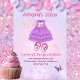 💜She's dressed in a delightful purple and pink ruffle gown, complete with a sizeable hair bow, and is set against a pastel gradient heavenly backdrop featuring butterflies and hearts in matching colours.
