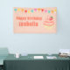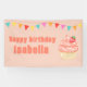 Celebrate your little sweetheart's very first milestone with this adorable First Birthday design featuring a delightful strawberry cupcake! This charming design in tones of pink, peach and red sets the stage for a sweet celebration. Easy to customise with the name of the child. Text: "Happy birthday Name)".