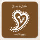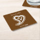 Protect your tables and create a coordinated look for your wedding or event with these pretty paper coasters, featuring a chocolate brown background decorated with a white paisley heart that is surrounded polka dots and has a stylised vine design in the interior. Some sample text that you can customise for your event are available at the top and bottom to add a personalised touch.