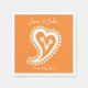 Create a coordinated look for your wedding or special event with these napkins, featuring a bright orange background decorated with a white paisley heart, surrounded by polka dots with a vine in the interior, and some sample text that you can customise for your needs.