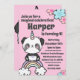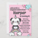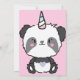 Celebrate a magical celebration with this adorable Panda Unicorn on top of a rainbow. The background is a lovely light pink, features pink and blue floral accents. Personalise to any party details.
