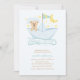 These adorable invitations feature a sweet illustration of a cute little baby brown bear inside a paper boat on a light blue background of moon and stars. Perfect for baby showers, christening, baptism, baby's first birthday party, and more!