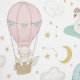 Float into a gentle dreamland with this charming nursery wallpaper. This enchanting pattern features sweet watercolor illustrations of swans gliding on tiny ponds, friendly elephants, and adorable bears, foxes, and lambs soaring high in beautifully striped pastel hot air balloons. Set against a clean white background, the scene is dotted with fluffy clouds, golden stars, and delicate pink cherry blossom trees. The soft color palette of blush pink, mint green, and pale yellow creates a magical, whimsical, and gender-neutral atmosphere, making it a perfect, serene backdrop for a nursery, child's room, or playroom. Search ID1234 to see products with this enchanting pattern. Note: design adapted from generative content.
