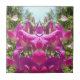 This artwork came from two gorgeous photos of different wildflowers in Tilden Park, Ca. One of sweet pea flowers, and the other one I could not identify. The colours were not enhanced or manipulated. The result is a cool kaleidoscopic design evoking an explosion of flowery beauty, with a psychedelic effect.