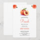 Invite guests to your event with this customisable baby shower invitation. It features watercolor peaches. Personalise by adding your details. This peach baby shower invitation is perfect for spring and summer baby shower
