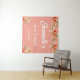 Transform your event space with this vibrant summer orchard backdrop tapestry. The design features a lush garland of watercolor peaches and delicate pink blossoms set against a warm, sun-kissed coral background. This is an ideal focal point for a "Sweet Little Peach" baby shower or a garden-themed birthday celebration.