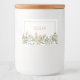 Food container with soft floral and watercolor design. Flowers in peachy and sage green colours. A stylish way to label your food containers.
