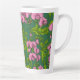 Sweet peas and bumblebees, green and pink latte mug