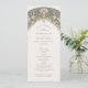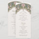 This beautifully designed wedding ceremony program is perfect for couples seeking an elegant, vintage-inspired touch for their special day. The program features intricate sage and white floral motifs, reminiscent of classic vintage artistry, adding a timeless charm to your wedding decor. The delicate scrollwork and symmetrical floral design bring sophistication and grace to the layout. The front highlights the order of ceremony, while the back lists the wedding party, all in a refined serif font. Printed on quality cardstock, this program exudes elegance and is a perfect keepsake for guests.