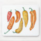 This mouse pad features an illustrated pattern of colorful red, orange, and yellow peppers. Artwork copyright: Dominic White. All rights reserved.