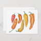 These postcards feature an illustration of colourful red, orange, and yellow peppers. Artwork copyright: Dominic White. All rights reserved.