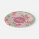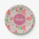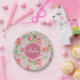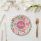 Pink and green floral paper plates with apple blossoms. Personalise this sweet spring floral design by adding your name and monogram initial to the deep pink octagon badge. This is part of the Apple Blossom Floral Rapture Rose Monogram Collection.