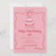 Celebrate your little one's first birthday with a charming blush pink bow invitation featuring a delightful pink coquette design, with round shaped cake illustration.