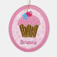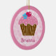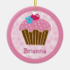 What a perfect ornament for your girly girl (or grownup) who just can't get enough cupcakes! A chocolate cupcake with pink icing on this ornament looks good enough to eat. This ceramic ornament can be used as much more than a Christmas ornament. Use it in kid's rooms as fan, blind or light pulls, or add a suction cup and hang it anywhere! Available in alternate cupcake and colour designs with matching products.