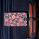 Add your first and last name, and contact details to create your personalised bag tag! Retro style doodle flower patterned print in pretty shades of pink with black leaves and stems on a grey background, and a fancy and feminine sophisticated label graphic with three customizeable text fields just waiting to be made just for you! Add some pizazz and show off your wild side with this cool personalised luggage tag for ladies.