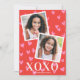 This modern and sweet Valentine classroom photo card features a background pattern of pink hearts on a red background, large typography XOXO, and two square photos on the front. The red and pink heart pattern is continued on the back. You can also customise this design further by adding another photo or additional text to the back.