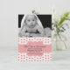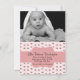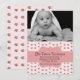 Stylish custom photo baby birth announcement done in a pink and white striped pattern, with pretty pink roses. A custom baby photo decorates the top, of the flat card, with a pink decorative band text area, across the floral pattern. The custom black text ready to personalise, with your baby's birth information. Cute way to announce the arrival of your baby to friends and family.
