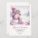 Celebrate the season with this cute watercolor pink coquette snowman kids Christmas card, set in a magical snowy forest. Editable text lets you personalize instantly, and the digital download provides an easy, fast, and festive holiday greeting.