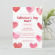 Sweet Pink Watercolor Hearts Galentine’s Day Party Invitation
