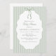 Sweet Pinstriped Green Bow Baby Shower Invitation