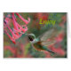 "Enjoy Life's Sweet Pleasures" is the sentiment on this greeting card featuring a ruby-throated Broad tail Hummingbird tasting the nectar from a wildflower.