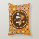 Sweet retro cottagecore style accent pillow features centre orange capped forest mushrooms with flower pattern background