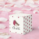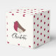 Simple and stylish Robin and Red Bow pillow. Clean modern design with Robin and Christmas greeting on front. On the reverse, there is a red bow and space to customise by name and sentiment. The other sides of the box are covered in polka dots.